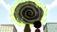 A dimensional portal is a portal opened by dimensional scissors or a similar artifact (and on rare occasions, exceptionally powerful magic users) that allows the user to travel to another location and/or dimension. The portal's appearance can vary depending on the destination being traveled to. Star Butterfly often travels across the multiverse using dimensional portals with her companion Marco Diaz.