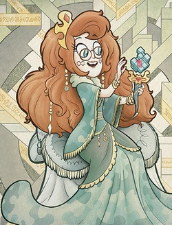 Rhina Butterfly, also known as Rhina the Riddled, is the 32nd Queen of the Kingdom of Mewni,[1] the daughter of Crescenta Butterfly, and Star Butterfly's third great-grandmother. She is featured in Star vs. the Forces of Evil: The Magic Book of Spells.